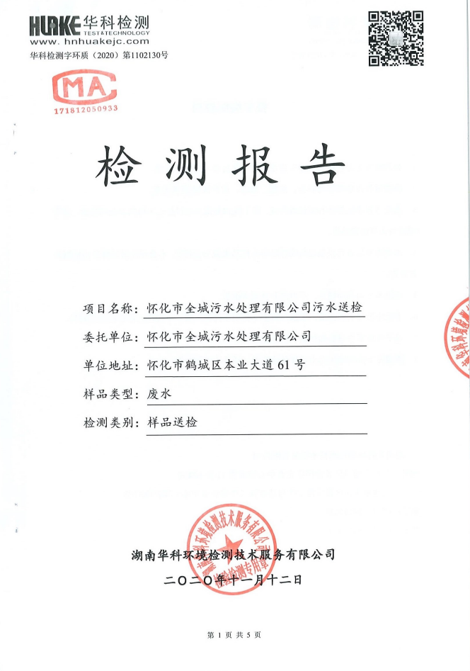 湖南怀德检测技术有限公司 2024年12月 污水出水检测报告